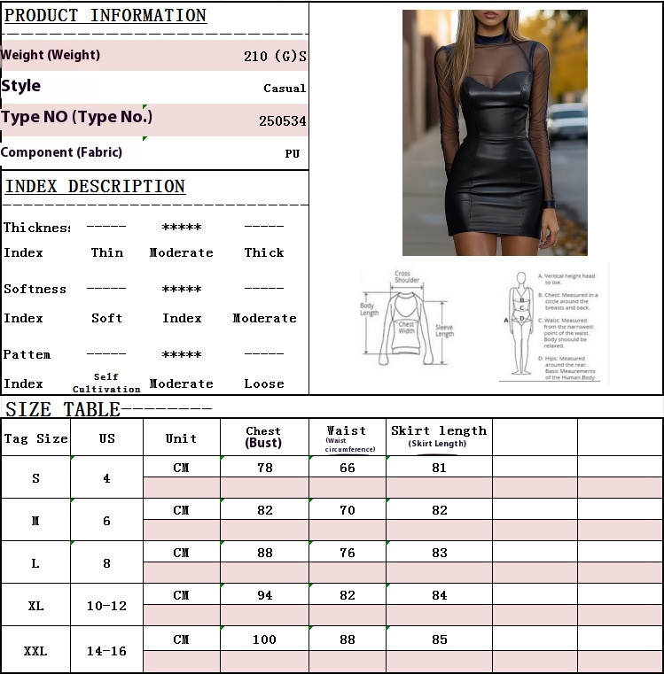 Sexy Hot Girl Mesh Stitching Leather Fashion Tight Dress